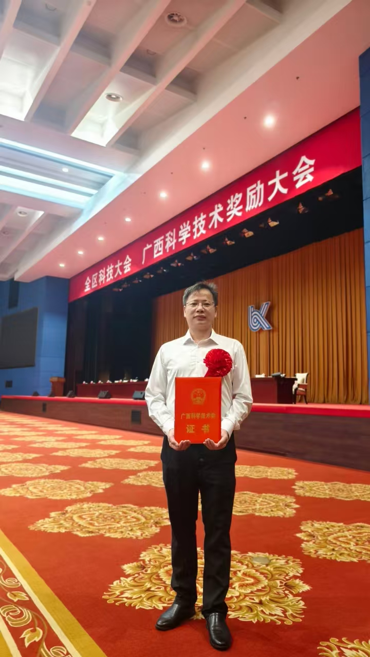 近日,全区科技大会、广西科学技术奖励大会在南宁召开,大会公布2023年广西科学技术奖获奖榜单,并为获奖者颁奖。我院龙雨荣获2023年度广西科学技术发明奖一等奖,潘明章荣获广西科学技术进步奖一等奖,双双实现我院在该奖项上的历史突破。此外,作为获奖成员之一,我院的黄伟、陈勇荣获广西科技进步奖一等奖2项,官维荣获广西科技进步奖二等奖1项。会后,龙雨教授和潘明章教授还作为获奖代表出席了自治区领导与院士专家座谈会。