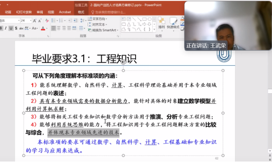 为更好的凝练工程教育专业认证申请材料,2024年10月17日晚,我院邀请上海大学王武荣教授我院机械设计制造及其自动化、机械电子工程、车辆工程和能源与动力工程等4个专业在整理申请材料时提出的共性问题进行辅导答疑。辅导会议通过腾讯会议召开,历时3个多小时。学院副院长李俚、机械工程系主任邓建新、机械电子工程系主任李欣欣,车辆系主任李岩舟、能源与动力系主任欧阳天成以及各专业系副主任和9门核心课的骨干教师等23人参加辅导会。