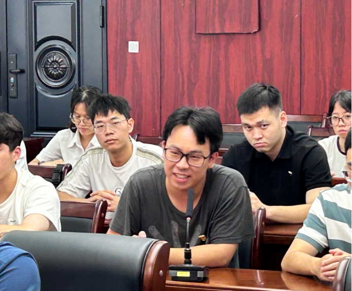 梁安忠部长详细介绍了在那坡县工作的广西大学选调生的基本情况,以及那坡县产业发展的相关情况。他指出,那坡县委组织部高度重视选调生的培养与选拔工作,重视选调生在一线岗位经风雨、见世面、长才干。梁部长进一步分析了那坡县的产业发展现状,指出第一产业和第三产业中的农业服务业发展相对较好,但第二产业工业发展滞后。尽管那坡县拥有丰富的铝土矿资源,但由于开采难度较大,工业发展受限,导致县域经济整体发展水平不高,人才流失现象较为突出。梁部长强调,留在那坡工作需要勇气与担当,并表达了加强学校与政府合作的强烈愿望,特别是在教育领域深化合作。他希望广西大学能够加大对那坡县教育的支持力度,助力恢复边境教育点,为培养本土人才、促进县域可持续发展提供有力支撑。