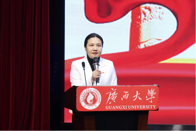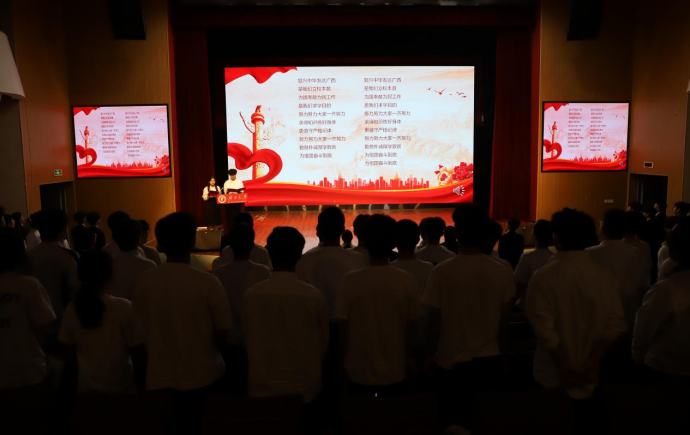 “勤恳朴诚,厚学致新,为祖国奋斗到底!”大会尾声,所有与会成员全体起立,共同唱响《广西大学校歌》,大会在激昂的校歌中落下帷幕。