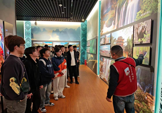在广西规划馆,本科生第六党支部的党员们在规划馆讲解员的引导下走进壮美广西厅,从壮乡大地的历史沿革到现代城乡的发展蓝图,从脱贫攻坚的辉煌成果到面向未来的战略布局,展厅中的陈列文物、沙盘模型、图片短片,全方位展现了在党中央坚强领导下,广西在经济社会发展、生态文明建设、民族团结进步等方面取得的非凡成就。并逐一参观各个展区,通过展厅丰富多样的展陈形式,党员们深度领略了八桂山水的秀美、滨海城市的壮阔、南疆边关的厚重、民俗交融的多彩以及跨境风貌的独特,近距离地触摸脚下这片土地悠久的历史脉络,深刻地感悟广西深厚的红色底蕴与民族文化积淀。