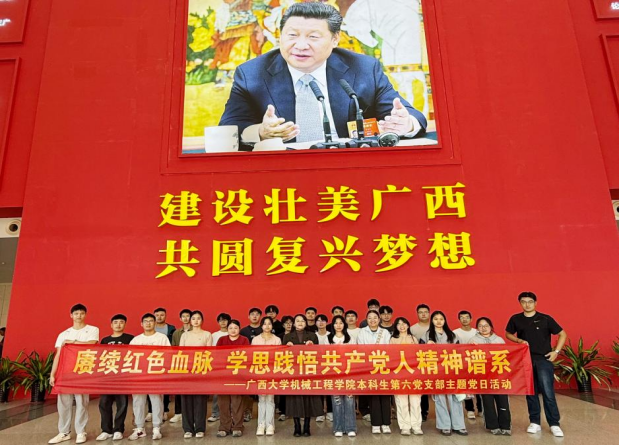 为传承和弘扬以伟大建党精神为源头的中国共产党人的精神谱系,推动红色血脉在新时代焕发新的生机与活力,引导青年党员在红色革命故事中感悟初心使命,在红色发展历程中凝聚奋进力量,近日,机械工程学院本科生第六党支部、本科生第五党支部分别在支部书记宋丹婷、梁炜昊的带领下,开展学思践悟中国共产党人精神谱系及铸牢中华民族共同体意识主题党日活动,前往广西规划馆、林景云故居、广西民族博物馆进行现场学习实践。