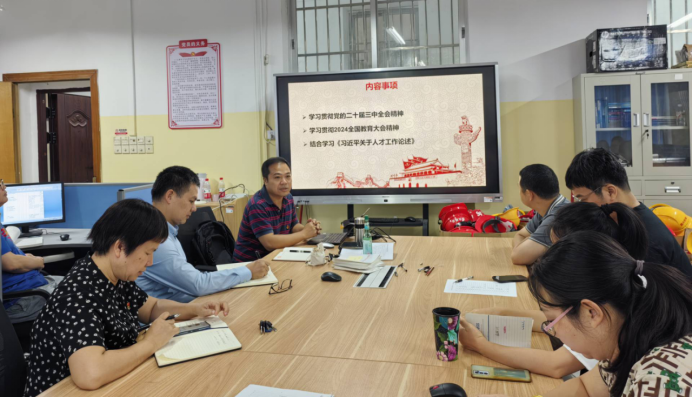 支部结合前次课后研讨的经验,围绕本次培训导学内容研究确定了本次“提高新时代人才培养本领和水平,服务教育强国战略”的研讨主题。前期支部先后通过“第一议题”制度、主题党日等形式学习了包括习近平新时代中国特色社会主义思想、2024年全国教育大会精神、《习近平关于人才工作论述摘编》、教育强国建设规划纲要等相关内容,同时作为全国党建样板支部以及广西的“双带头人”教师支部书记“强国行”专项行动团队,支部党员通过日常在贯彻落实“立德树人一号工程”、“三全育人”综合改革、工科课程思政改革过程中,积累了丰富的实践经验,为本次的研讨奠定了坚实的思想认识和实践经验的前期基础。