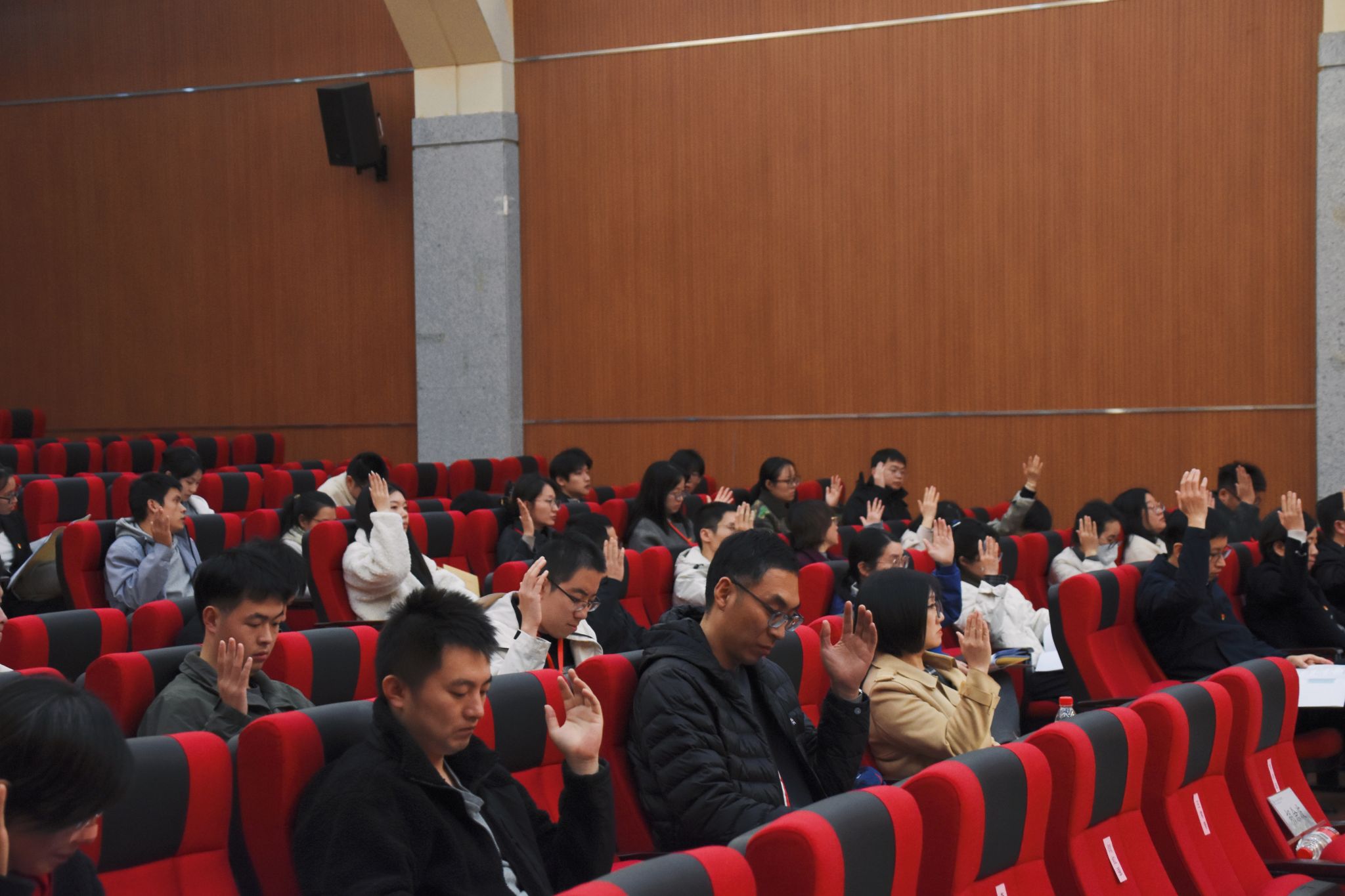2025年11月25日,中国共产党太阳成tyc33455cc党员大会在金宗城法学教学中心召开。学校党委委员、副校长胡余波出席大会。会议由学院党委副书记马利文主持,学院全体师生党员出席,并邀请民主党派教师代表列席。