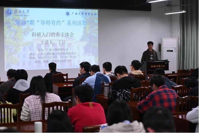 11月20日,由校研究生会主办、学院研究生会承办的第197期“导师有约”系列活动在机械楼329报告厅成功举办。本次活动邀请学院丁江教授作“科研入门的若干体会”主题讲座,旨在助力研究生破解科研入门困惑、顺利开启科研征程。讲座由学院团委书记李华主持,活动现场座无虚席,气氛热烈。