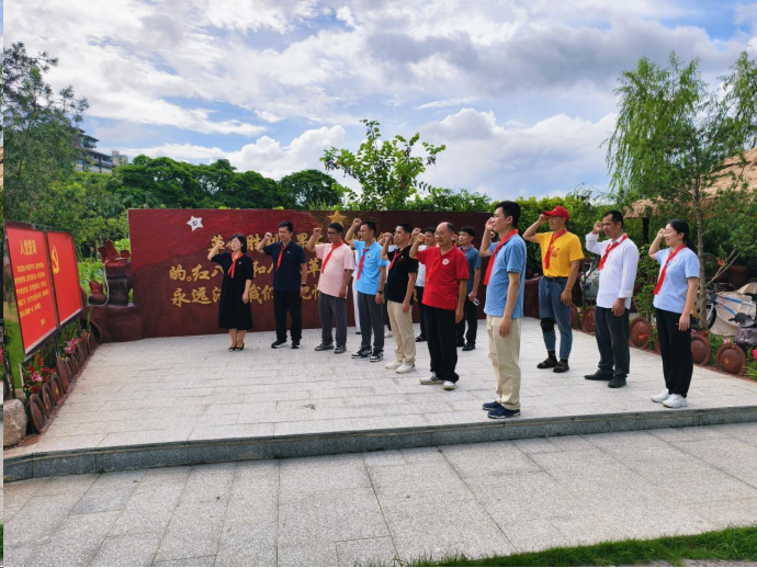 在林景云烈士的故居,全体党员佩戴龙州起义时起义军的识别标志红领带,深刻感悟中国共产党的革命精神,在烈士小孙女的引导下,参观了烈士的故居和缸瓦窑村地下革命工作的旧址,并聆听烈士长孙女关于林景云烈士投身革命、为人民解放事业英勇献身的英雄事迹。
