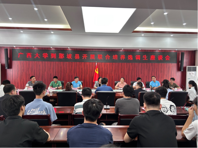 在平果市政府、那坡县政府,师生党员们分别与平果市委组织部、那坡县委组织部开展座谈,聆听我校驻平果、那坡等基层地区的选调生代表们的基层历练和成长故事,深入了解选调生在基层的生活状况与工作成效。在深切感受他们扎根基层、服务群众的奉献精神的同时,也代表学校党委送去母校对选调生们的问候。