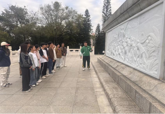 在革命烈士纪念碑前,院团委书记兼党支部书记李华带领全体党员整齐列队,面向鲜红党旗重温入党誓词,表达青年党员不忘初心、牢记使命的坚定信念。全体党员怀着崇敬之情向革命烈士敬献鲜花,深切缅怀为民族解放事业英勇献身的革命先烈,三位党员代表分别在纪念碑浮雕前生动讲解邓小平、韦拔群、张云逸、陈立达等老一辈革命家领导创建左右江革命根据地、桂林抗日救亡、以及攻打镇南关等民族救亡壮举中与各族群众并肩作战的光辉历程和感人事迹。