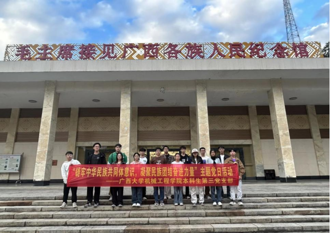 为纪念中国人民抗日战争暨世界反法西斯战争胜利八十周年,深入学习贯彻党的二十大和二十届二中、三中、四中全会精神,铸牢中华民族共同体意识,11月22日,我院本科生第三党支部赴南宁市人民公园开展“铸牢中华民族共同体意识,凝聚民族团结奋进力量”主题党日活动。